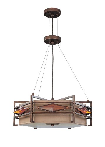!9# Nuvo Lighting 60/3875 Gable 3-Light Pendant Golden Bronze Fabric shade, Amber Jewels, Honey Diffuser, Gramercy Bronze